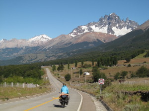 Bis nach Cerro Castillo verbleiben uns weitere 90km schönsten Asphalts im toller Landschaft. Wir radeln im Reserva Nacional Cerro Castillo durch den Wald, vorbei an kleinen Bächen und bewundern im Hintergrund die schroffen Felswände der Berge. Besonders ist die Felsformation des Gipfels des Cerro Castillo. Nachdem wir Coyhaique verlassen haben, verändert sich die Landschaft, Weidewirtschaft und Häuser sowie Verkehr nehmen ab. Die Natur wird wilder und ursprünglicher je weiter südlich wir kommen.