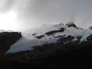 In den folgenden Tagen lautet die immer wiederkehrende Frage: Muss es denn heute schon wieder regnen? – Ja, das muss es. Wir sind jetzt im Regenwald und im Regenwald, da regnet’s halt! Nachdem wir einst den Fehler gemacht haben, die Regenklamotten zu spät anzuziehen und völlig kalt und durchnässt sind, ist es daraufhin ein dauerndes Wechselspiel von an-aus, an-aus, denn auf Regen folgt Sonnenschein, der sich mit Nieselregen und Hagel abwechselt. Dieses blöde Mistwetter verwehrt uns Aussichten auf die Gipfel des Eisfeldes Hielo de Norte direkt neben uns.