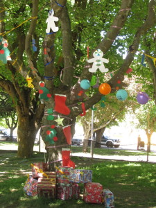 Geschafft kommen wir nach einem deftigen Radeltag recht welliger 80km in Coyhaique, der Hauptstadt der Region Aiséns, an. Just vor der Stadt wartet nochmal eine lange Steigung auf uns. Der Asphalt wechselt sich ab mit Betonplatten, die von lustigen Klinkersteinen unterbrochen werden. Ein Tunnel folgt. Dann stehen wir schon oben auf dem mirador im stürmischen Wind und schauen hinab auf das sich ausbreitende Städtlein, welches beschaulich von Wiesen und Bergen umgeben wird. Die XI Region Chiles Aisén wurde einst von den Menschen, die aus dem Süden hinaufschifften, nach „ice end“ benannt. Wir steuern erst mal die plaza für eine Pause an. Diese, von einem Carabinieri entworfen, ist fünfeckig und erinnert an die Form des Wappens der Polizei. Der Platz ist von den örtlichen Schülern niedlich weihnachtlich geschmückt worden.