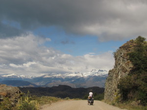 Heute ist Heiligabend. In der Bäckerei bekommen wir aufgrund von fehlendem Wechselgeld das Brot geschenkt. Das erfreut uns und wir machen uns auf den Weg dem nun folgenden ca. 470km auf Schotter bis nach Villa O’Higgins entgegen. Erstmal geht es in engen Serpentinen knackig bergauf. Die Steinchen rutschen weg, das Vorderrad bricht aus. Immer weiter fahren, bloß nicht aus versehen anhalten, denn dann dreht beim Anfahren das Hinterrad durch und es muss geschoben werden.