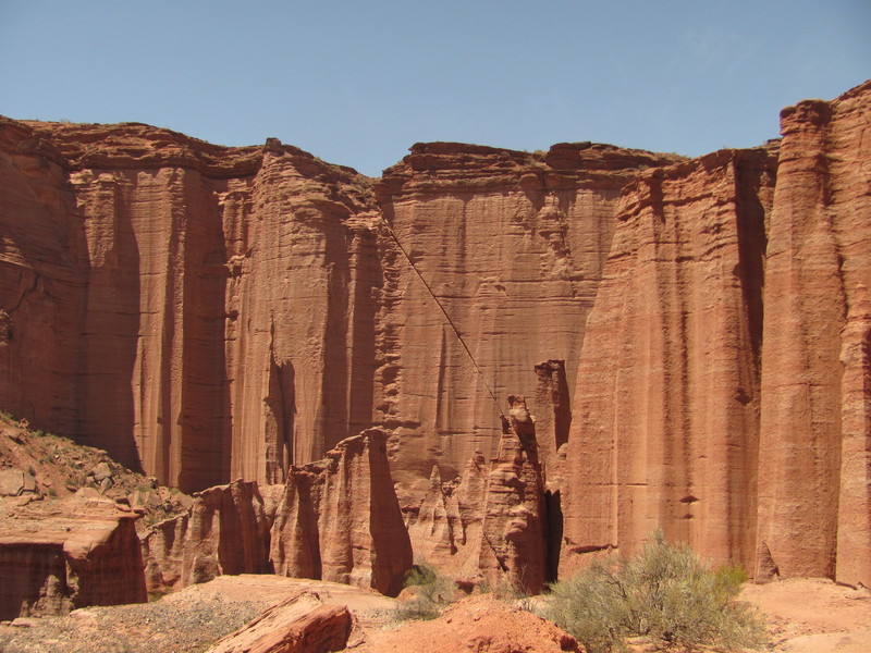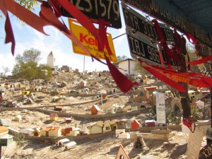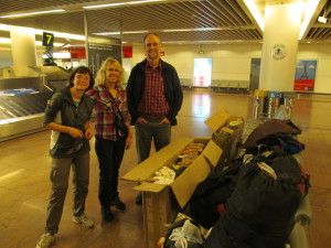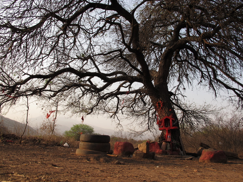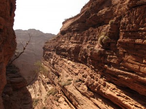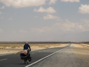 Endlich kann Hardy mit der neuen, zuverlässigen Felge wieder richtig Kraft einsetzen. Das ist auf der folgenden 12km langen Steigung auch nötig. Loser Schotter, der das Vorderrad wegrutschen lässt, sowie viel Jeepverkehr und dementsprechend aufgewirbelter Staub machen uns in der kräftigen Morgensonne Freude, als wir uns schwitzend hinaufarbeiten. Bremsen, die besonders mein Gesicht lieben, umschwirren uns wie bekloppt. Vier Wegbegleiter sind keine Seltenheit. Zu dumm, dass beide Hände am Lenker bleiben müssen, da hilft nur Pusten, damit die Biester nicht stechen.