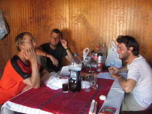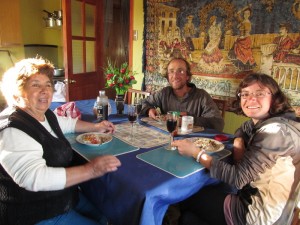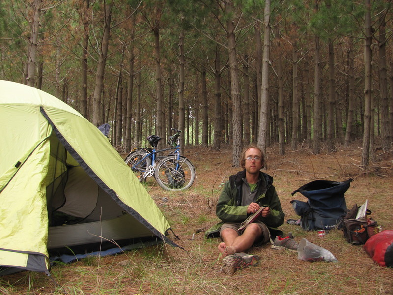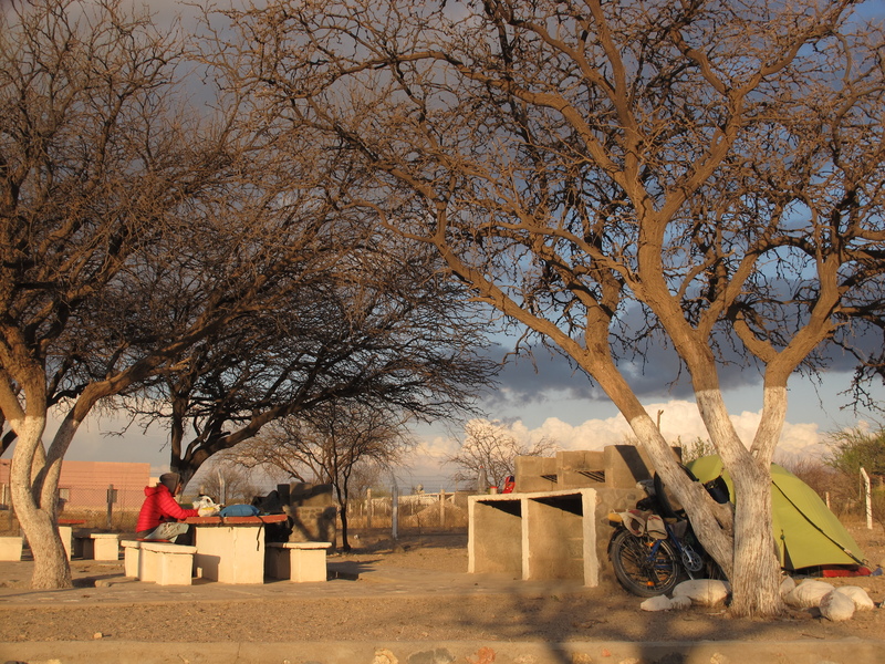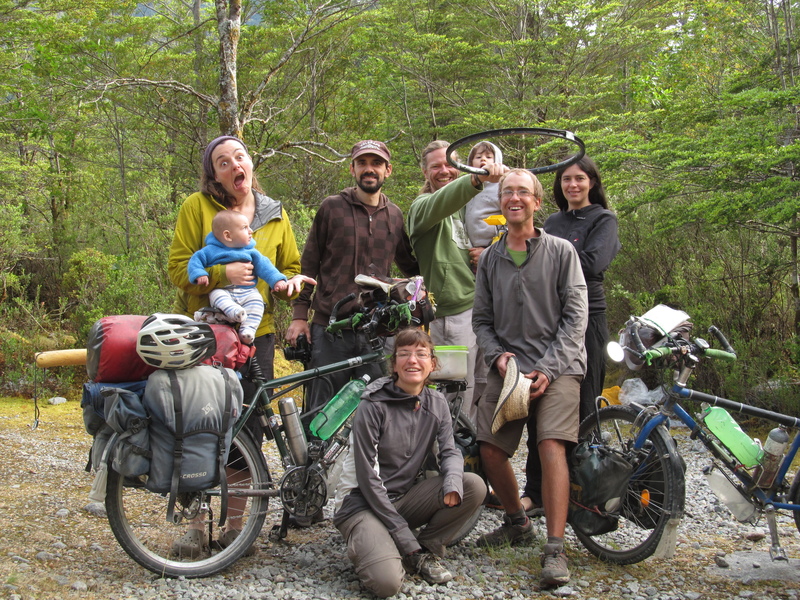Erstaunt finden wir auf den Lenkertaschen der Räder zwei Kekspackungen und eine Nachricht für uns, „Wenn ihr Lust habt auf nette Unterhaltung und ein Abendessen, kommt zu Zeltplatz Nummer vier!“ Das lassen wir uns natürlich nicht zweimal sagen und lernen vier Reiseradler aus Spanien, Holland und Argentinien kennen. Aufgrund ihrer kleinen Kinder sind Álvaro, Lucía, Harry und seine schwangere Freundin gerade mit dem Auto auf Reisen.