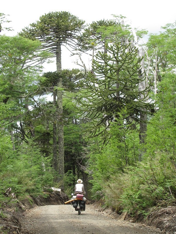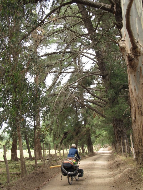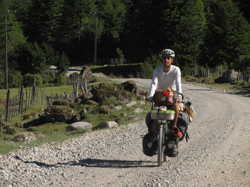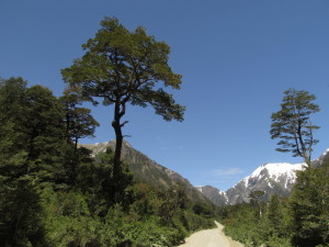 Bis nach Cerro Castillo verbleiben uns weitere 90km schönsten Asphalts im toller Landschaft. Wir radeln im Reserva Nacional Cerro Castillo durch den Wald, vorbei an kleinen Bächen und bewundern im Hintergrund die schroffen Felswände der Berge. Besonders ist die Felsformation des Gipfels des Cerro Castillo. Nachdem wir Coyhaique verlassen haben, verändert sich die Landschaft, Weidewirtschaft und Häuser sowie Verkehr nehmen ab. Die Natur wird wilder und ursprünglicher je weiter südlich wir kommen.