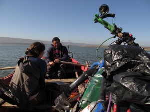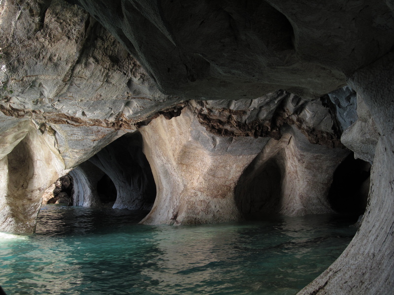 Am nächsten Morgen weht es etwas weniger. Hardy, Mattjis, Mauricio und Nicolas unternehmen eine Bootstour zu den nahen capillas de marmól. Hier haben die Wellen des Lago General Carrera schöne Höhlen und Ausbuchtungen in die Uferwände aus fein gestreiften Marmor gewaschen.