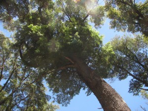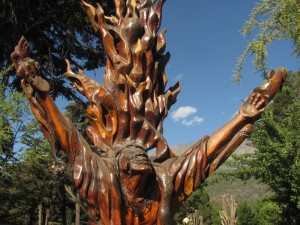 Geschafft kommen wir nach einem deftigen Radeltag recht welliger 80km in Coyhaique, der Hauptstadt der Region Aiséns, an. Just vor der Stadt wartet nochmal eine lange Steigung auf uns. Der Asphalt wechselt sich ab mit Betonplatten, die von lustigen Klinkersteinen unterbrochen werden. Ein Tunnel folgt. Dann stehen wir schon oben auf dem mirador im stürmischen Wind und schauen hinab auf das sich ausbreitende Städtlein, welches beschaulich von Wiesen und Bergen umgeben wird. Die XI Region Chiles Aisén wurde einst von den Menschen, die aus dem Süden hinaufschifften, nach „ice end“ benannt. Wir steuern erst mal die plaza für eine Pause an. Diese, von einem Carabinieri entworfen, ist fünfeckig und erinnert an die Form des Wappens der Polizei. Der Platz ist von den örtlichen Schülern niedlich weihnachtlich geschmückt worden.
