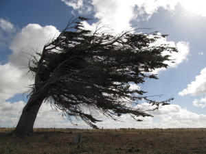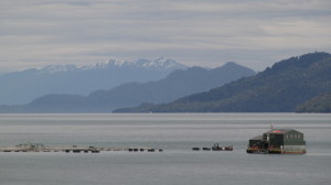 Die fehlenden 15km ins kleine Puerto Río Tranquillo radeln wir in Gewitterstimmung unter dunklen Wolken im Schneckentempo, denn nach wie vor werden wir von heftigen Windböen erfasst. Hier machen wir in einer kleinen hospedaje einen halben Ruhetag. Nach und nach trudeln mehr Radler ein. Auch die drei Jungs, mit denen wir bei Boris in Coyhaique zusammen gewohnt hatten, kommen in unsere Pension. Drinnen am Ofen ist es gemütlich und warm, draußen können wir beobachten wie sich die Bäume im anhaltenden, windigen Nieselregen nur so biegen.