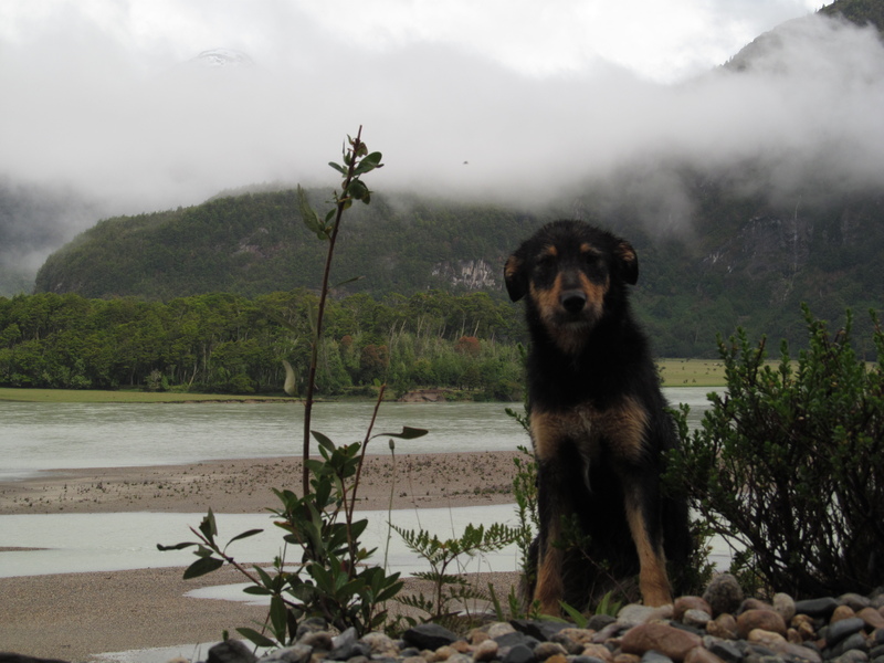 Als wir mitten im Nirgendwo uns auf drei aufeinander folgenden Pässen hoch und runter arbeiten sehen wir zum ersten Mal Guanacos, die größeren Vertreter der Alpakas. Kurz darauf kommt aus dem Nichts ein netter Hund angelaufen. Nachdem er gejault und uns damit anscheinend verklickert hat, das er nicht mehr allein sein möchte, rennt er die folgenden 2,5 Tage, ganze 150km mit uns mit! Es dauert etwas, aber dann macht es klick und wir stellen fest, dass er ja eine sie ist. Aus Paco wird Paca. Wir geben Reis und Brot ab, müssen sie aber leider am Fähranleger, als wir bei Puerto Yungay nach Río Bravo übersetzen, stehen lassen. Das ist für alle Beteiligten traurig.