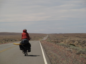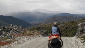 Heute ist Heiligabend. In der Bäckerei bekommen wir aufgrund von fehlendem Wechselgeld das Brot geschenkt. Das erfreut uns und wir machen uns auf den Weg dem nun folgenden ca. 470km auf Schotter bis nach Villa O’Higgins entgegen. Erstmal geht es in engen Serpentinen knackig bergauf. Die Steinchen rutschen weg, das Vorderrad bricht aus. Immer weiter fahren, bloß nicht aus versehen anhalten, denn dann dreht beim Anfahren das Hinterrad durch und es muss geschoben werden.