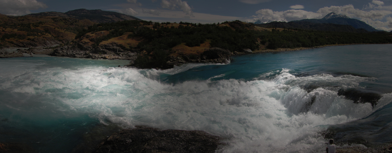 Auf einen Wanderweg radeln wir zum Zusammenfluss des türkis leuchtenden Río Baker und weiß milchigen Río Neff. Gigantische Wassermassen stoßen in einer großen Welle aufeinander. Toll!