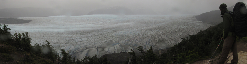 In den folgenden Tagen lautet die immer wiederkehrende Frage: Muss es denn heute schon wieder regnen? – Ja, das muss es. Wir sind jetzt im Regenwald und im Regenwald, da regnet’s halt! Nachdem wir einst den Fehler gemacht haben, die Regenklamotten zu spät anzuziehen und völlig kalt und durchnässt sind, ist es daraufhin ein dauerndes Wechselspiel von an-aus, an-aus, denn auf Regen folgt Sonnenschein, der sich mit Nieselregen und Hagel abwechselt. Dieses blöde Mistwetter verwehrt uns Aussichten auf die Gipfel des Eisfeldes Hielo de Norte direkt neben uns.