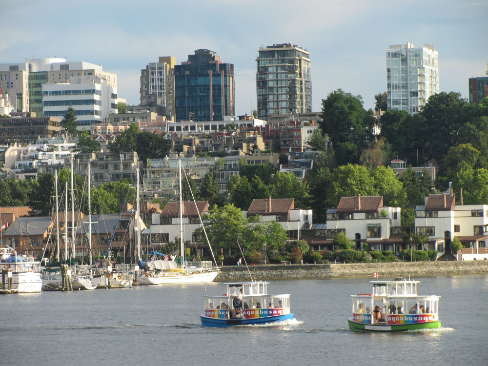 Wir sind völlig verwirrt, begeistert und überwältigt zugleich, plötzlich schwappt das Grossstadtleben wie eine hereinbrechende Welle über uns und schließt uns sogleich mit ein. Der Autoverkehr der Rushhour schiebt sich neben uns über die Brücke, Rennradler überholen uns, Fußgänger genießen die tolle Aussicht, über uns kreisen Flugzeuge und unter uns laufen riesige Kreuzfahrtschiffe neben vielen kleinen Segelbooten aus. Es ist laut und riecht ganz anders. Das Leben pulsiert hier. Wir wissen nicht, was mit uns geschieht und vor allem nicht, wo wir als erstes hinschauen sollen! Vancouver, das ist unsere erste Großstadt nach dem Verlassen Berlins. Die lange Zeit in der Wildnis und Einsamkeit Alaskas und Kanadas macht sich nun bemerkbar, wir können es nicht so ganz fassen in einer Stadt zu sein, sind dennoch total begeistert!