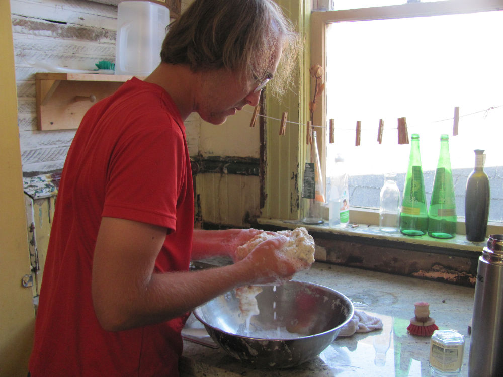 Heute Abend kriegen wir außerdem Besuch, Florian hat zwei andere Warmshower-Gaeste, für die er wegen unserer Anwesenheit keinen Platz hatte, sowie deren Host zum Abendbrot eingeladen. Hardy bereitet fleißig Seitan vor, der super ankommt. Wir lernen Siobhan und Matt aus Australien kennen, die, wie es der Zufall will, auch bis nach Argentinien radeln wollen. Die Beiden sind begeisterte Surfer und haben ihre (kleinen) Bretter natürlich mit dabei. Um diese transportieren zu können, haben sie sich Räder gekauft, deren Rahmen verlängert ist, so dass sie die Surfbretter auf dem Gepackträger platzieren können. Zudem radeln sie mit extra dicken Reifen, um auch am Strand fahren zu können. Hardy und ich sind uns in diesem Punkt einig: das wären keine Räder für uns. Auch können wir es uns nicht vorstellen am Strand zu fahren, da das Salz die Kette sowie die Gangschaltung angreift.