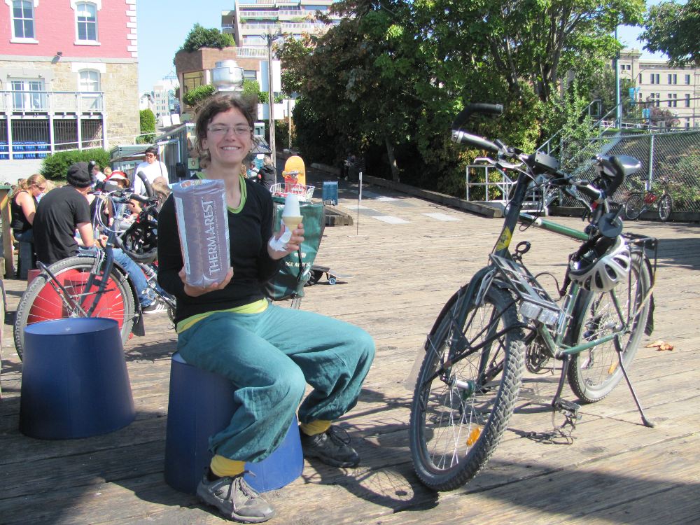 Wir besichtigen Downtown sowie Chinatown und essen unseren ersten Burrito zum Mittag. Diesmal haben wir beim Mountain Equipment Store Erfolg! Dank unserer, bzw. Hardys freundlicher und zugleich penetranter Art sowie einem Anruf seinerseits bei Therm A Rest (dem Isomattenhersteller) in Seattle, bekomme ich eine neue Isomatte gegen meine alte kostenlos ausgetauscht. Meine Freude ist groß! Denn dies war auch dringend notwendig, die Beule genau in der Mitte der Matratze wurde immer grosser und ich traute mich schon gar nicht mehr sie richtig aufzupusten. Zudem habe ich das neuste Modell bekommen, da meine alte Matratze nicht mehr hergestellt wird! Wir kaufen doch ein Bügelschloss und neue Regenüberzieher für Hardys alte Hinterradtaschen.