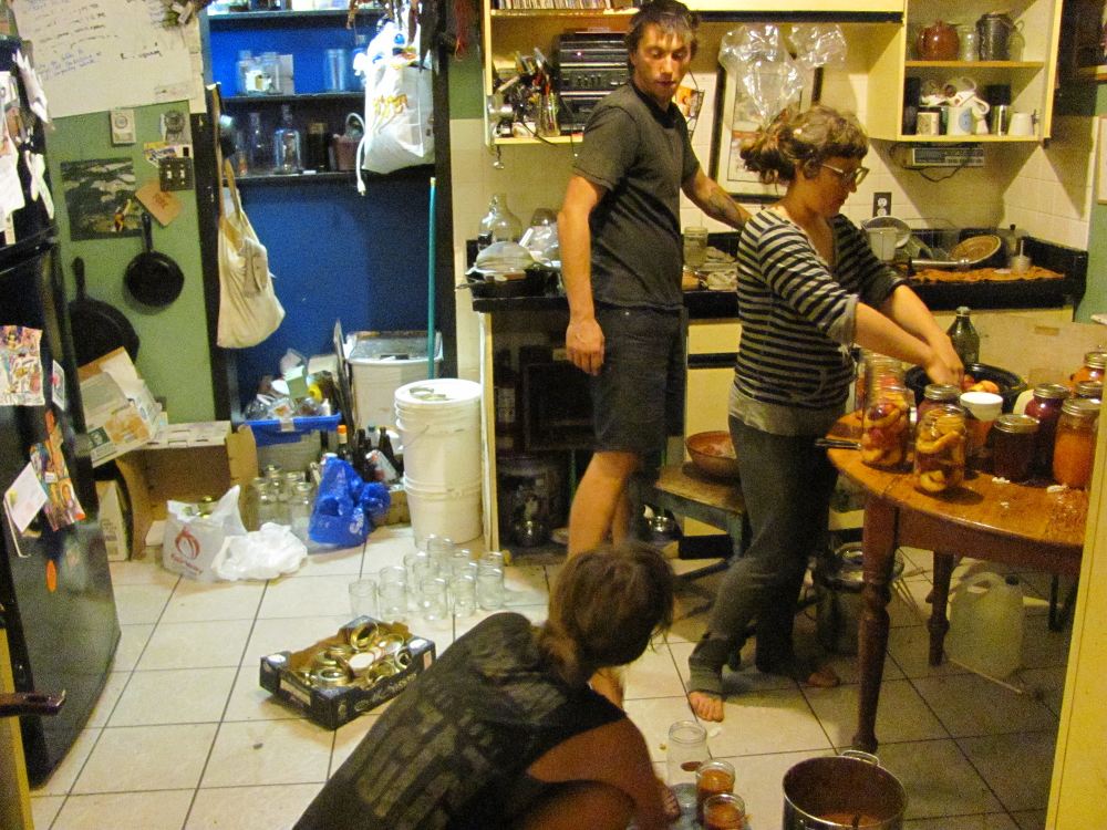 Auf dem großen Gelände der Fährgesellschaft sehen wir zum erstem Mal Schilder, die das Ausfuehren von Bienen ausdrücklich verbieten. Wir gelangen zurück nach Vancouver Island und haben an diesem Tag noch weitere 30 km vor uns, um Victoria zu erreichen. Dort haben wir natürlich wieder einen warmshowers-host gefunden! Diesmal wohnen wir bei Luke, der mit vier weiteren Freunden zusammen lebt. Es gibt zwei Katzen und im Vorgarten laufen fünf Hühner herum. Diese sympathisch chaotische WG erinnert uns sehr an die KITA zu Hause. Im Garten bauen sie Gemüse und Obst an, es gibt Kräuter und jede Menge Brombeeren, die gerade reif sind. Die Küche der Fünf ist derzeit (oder meistens?) ein nettes Durcheinander. Es hängen getrocknete Kräuter herum, die Regale sind voller Essen. Im Moment sind sie mit dem Einwecken von Roter Beete, Tomaten und diversen Fruchten beschäftigt. Die Küche ist viel zu klein für all die Einweckgeräte und die vielen Menschen. Wir setzen uns in eine Ecke und beobachten interessiert die Szenerie. Sie scheinen das Einwecken voll drauf zu haben. Alles geht zack zack. Wir tragen unseren dazu Teil bei, indem wir die Küche putzen. Die Fünf sind super nett und interessant. Unsere Gesprächsthemen bewegen sich um Punkrock auf Vancouver Island und die hiesige Squatterszene (klein). Wir scheinen in der alternativen Szene gelandet zu sein. Das hatten wir schon lang nicht mehr.