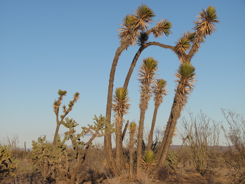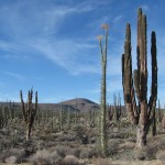 Am nächsten Tag haben wir Rückenwind und brausen die schnurgrade Straße ab Guerro Negro gen‘ Süden. Interessant ist, dass wir nun eine weitere Kakteenvegetationsgesellschaft passieren: Es gibt die großen, typischen Westernkakteen und dazwischen ein paar Yukkas sowie eine Kakteenart, die kleinbuschig ist, dafür fleischig und wenige Stacheln hat. Hardy lernt, wie die riesigen elefantenrüsselartigen Kakteen heißen, mit ihren kleinen ledrigen Blättchen. Es sind Cirrios, eine auf der Baja endemische Spezies.