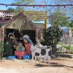 Im kleinen Ort gehen wir einkaufen und machen Mittag im Parkneben einer kleinen Krippe. Hardy geht es etwas besser. Kurz vor der Abfahrt kaufen wir noch eine Fahrradkette bei der einzigen klitzekleinen Fahrradwerkstatt.