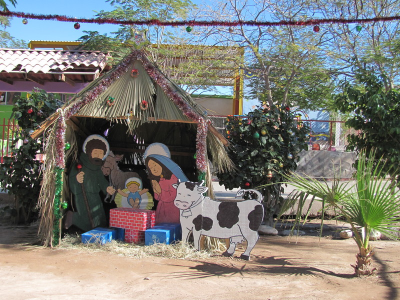 Heilig Abend verbringen wir in Loreto. Kurz vor dem Ort hatten wir geschlafen und setzen uns zum Frühstücken, um so hoffentlich eingeladen zu werden, mitten auf den Platz vor der Kirche. Schnell werden wir von einem älteren Amerikaner und einer Deutschen, die seit Jahren mit ihrem Mann in Oregon lebt, angesprochen. Aber keiner von ihnen will mit uns das Fest der Liebe zelebrieren.