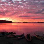 Am Strand liegen einige Kajaks parat und eine heiße Quelle gibt es auch. Wir sind begeistert, unterhalten uns viel mit den netten Leuten und genießen es, an diesem wunderschönen Ort verweilen zu dürfen. Geschützt liegt der Strand in einer kleinen Bucht mit vorgelagerten Inseln, auf denen Pelikane und Möwen leben. Jene Bucht liegt wiederum in einer größeren. So ist das Meer ruhig, es ist windstill.