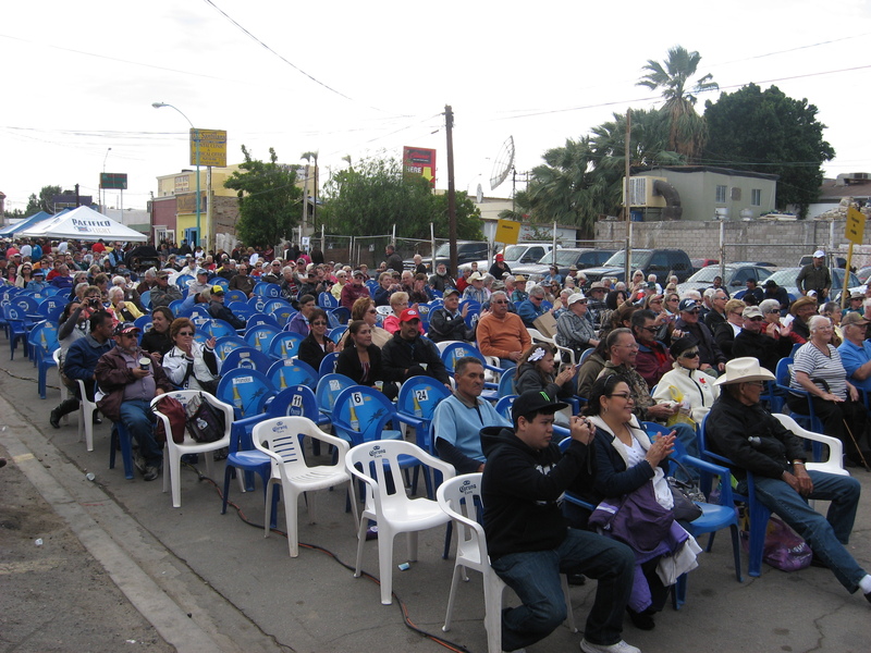 Den Snowbirds, den zumeist amerikanischen Rentnern, die hier zum Überwintern anreisen, wird gerade in Los Algodones ein Willkommensfest gegeben. Es gibt Essen und alkoholische Getränke umsonst. Viele angetüterte alte Menschen umgeben uns. Musik wird laut gespielt. Wir essen und trinken eine Kleinigkeit und verziehen uns schnell. So amerikanisch haben wir unseren Einstieg in Mexiko nicht vorgestellt.