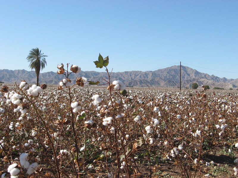 Richtung Süden fahren wir über kleine Straßen San Felipe entgegen. Schnell verschwinden größere Gebäude und Häuser aus Pappe tauchen auf. Es sieht sehr arm aus. Wir müssen uns daran gewöhnen. Ab und zu brennt ein Müllhaufen. Am Wegesrand liegen Plasteflaschen. Plastetüten werden vom Wind über die Felder getragen. Wir radeln durch die „Salatschüssel der Nation“, hier findet die größte Salatproduktion der Gegend statt. Neben diesem und weiterem Gemüseanbau stoßen wir auf Baumwollfelder.