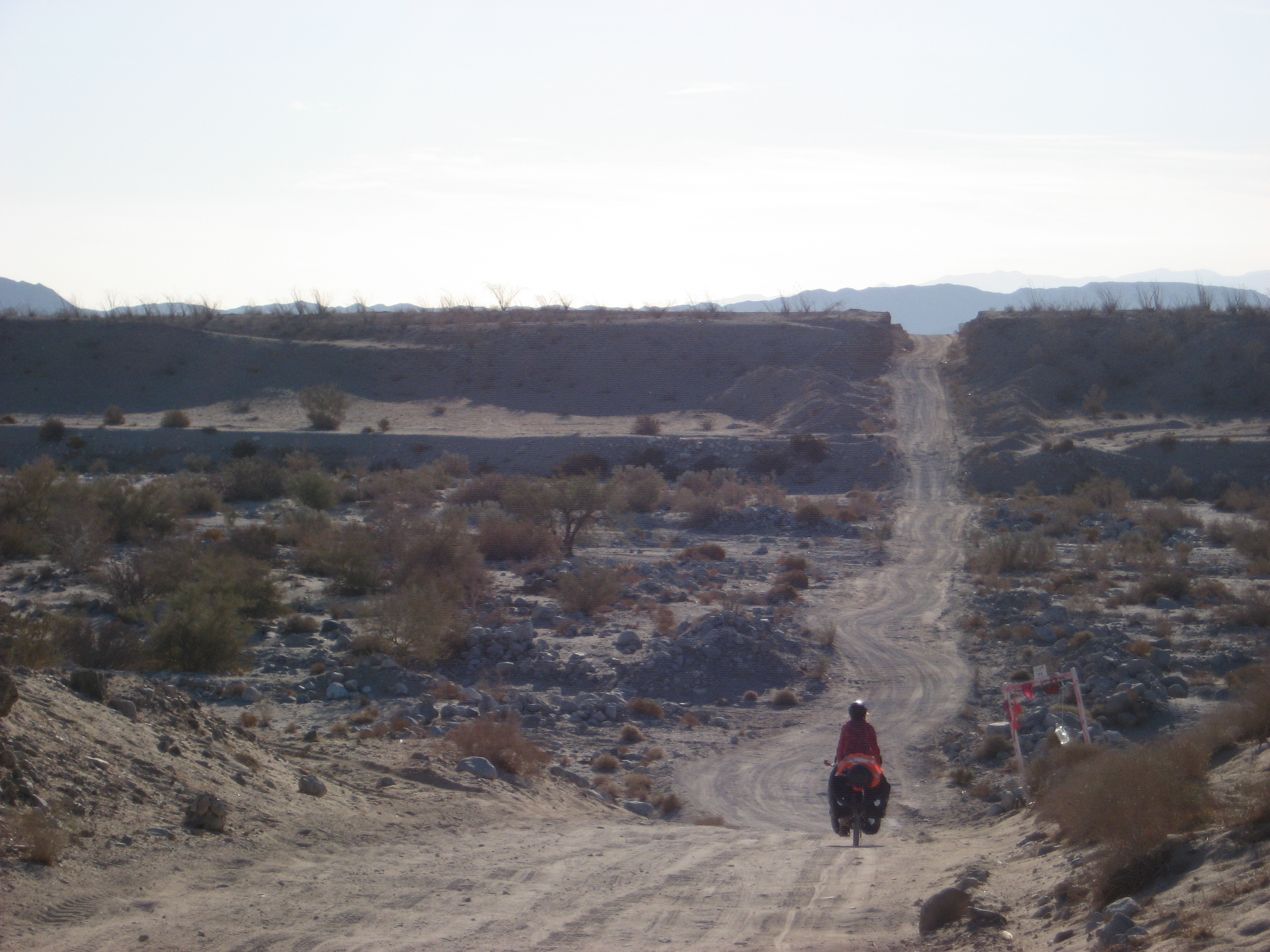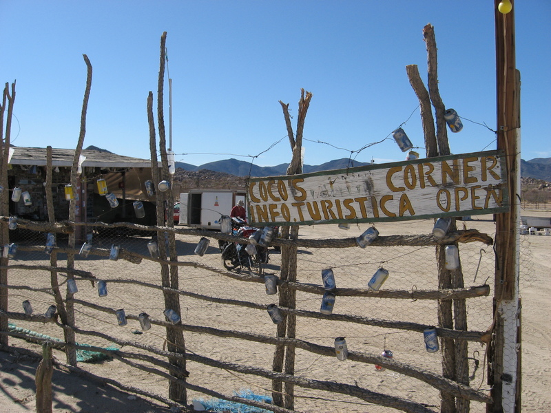 Auf der Ostseite der Baja soll ab dem kleinen Örtchen Puertecitos der Asphalt aufhören und eine 150 km lange Sand- und Steinpiste irgendwann wieder auf die Autobahn Mex 1 führen. Wir hatten bereits vor Jahren in dem Buch der Reiseradler Susi Bemsel und Daniel Snaider von dieser abenteuerlichen Strecke, vorbei an Cocos Corner gelesen.
