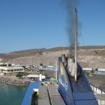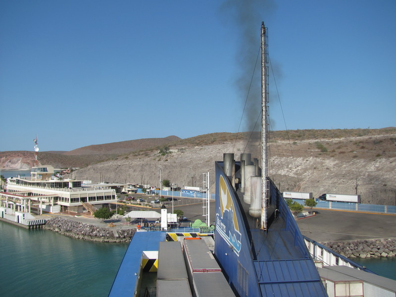 Unsere Fahrräder können wir auf der Fähre in einem extra Raum verstauen. Jener wird leider nicht abgeschlossen, so dass wir alle Wertsachen mitnehmen und auf das Beste hoffen. Mit viel Essen setzen wir uns in die gemütlichen Sessel in die Lounge. Überall laufen laute Filme, wir entscheiden und für den Raum mit dem niedrigsten Geräuschpegel. Natürlich findet sich gleich eine große mexikanische Familie hinter uns auf den noch leeren Sitzreihen ein…