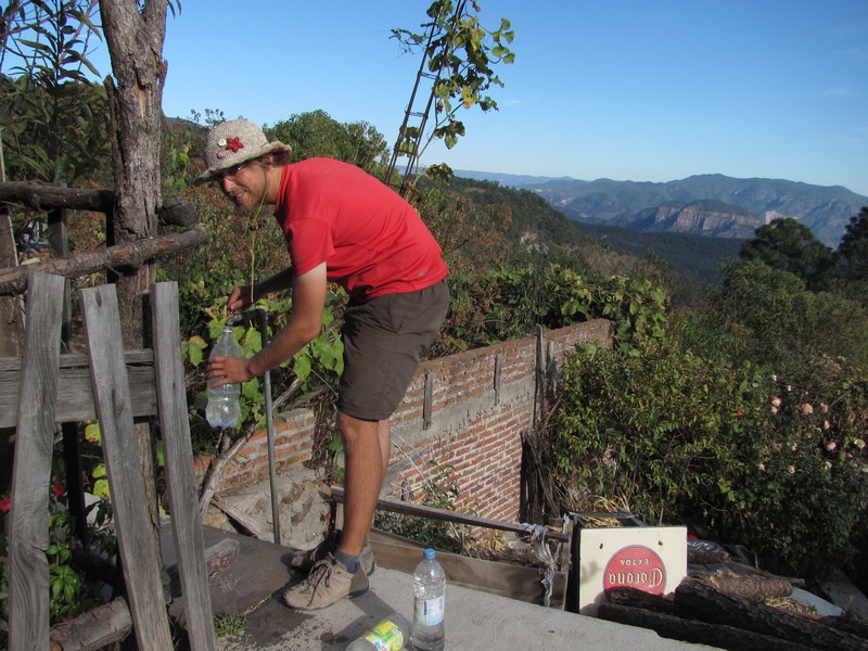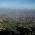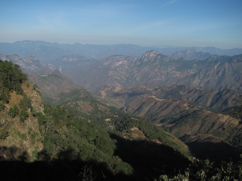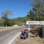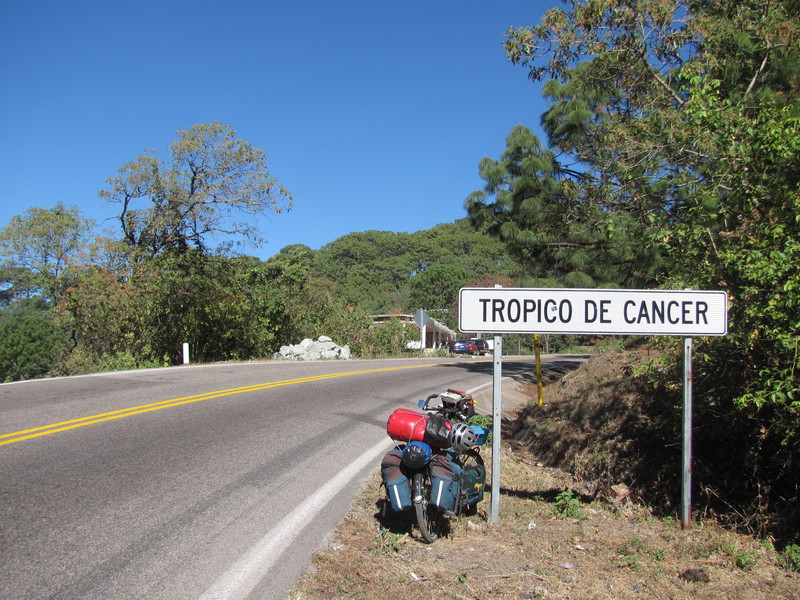 Weiter geht’s im Schneckentempo mit 7 km/h. Es ist steil und anstrengend. Wir überqueren den nördlichen Wendekreis, diesmal nach Norden, und sind jetzt auf einer Höhe von 1700 m. Dicht ist die Straße an die steilen, imposanten Felswände gebaut, auf der anderen Seite fallen diese tief ab. Grüne Berge so weit das Auge reicht. Kakteen neben Kiefern machen eine besondere Mischung aus.