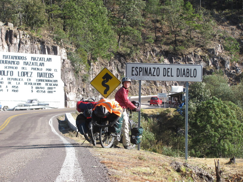 In El Salto gehe ich einkaufen und werde von zwei Frauen wegen meines roten Fleckes am Arsch angequatscht. So bequem mein Sattel auch ist, leider hat er einen großen unübersehbaren Nachteil: Das schöne Mahagoni-braun färbt auch nach all den vielen Kilometern Tag für Tag auf meine beige Hose ab. Es sieht wirklich doof aus. Die beiden Frauen, peinlich berührt, wissen auch gar nicht wie sie es mir sagen sollen. Was die wohl denken. In Durango muss ein Tuch her.