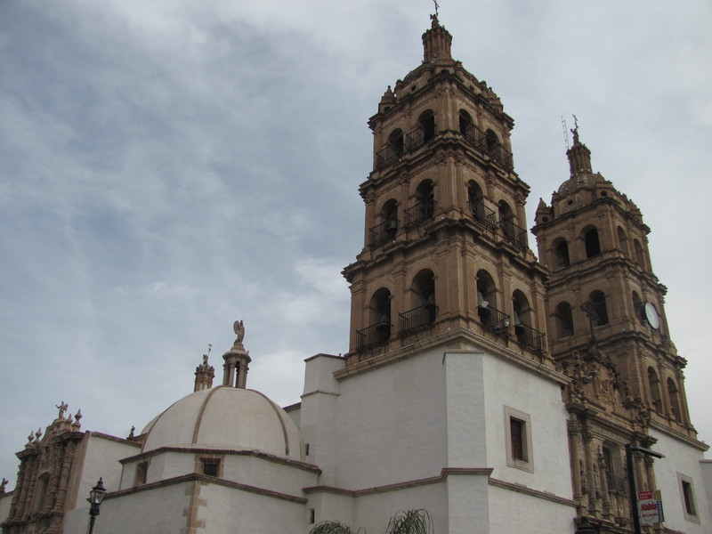 Auf einer Bank sitzend, mitten im kolonialem Zentrum auf der Plaza vor der großen Kathedrale Durangos schauen wir uns um. Erstmal Frühstücken ist angesagt. Um uns