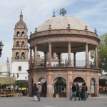 An einer Straßenecke essen wir unsere ersten Gorditas, Teigfladen, die mit einer scharfen Soße und etwas Fleisch sowie Gemüse gefüllt sind. Dann geht’s auf den Markt, bzw. in die Markthalle. Eine bunte Mischung aus Obst- und Gemüseständen, Fleisch- und Fischwaren, frisch gepressten Säften und jede Menge Klamotten und Haushaltskram umgibt uns. Typisch für Durango sind die schwarzen, hochgiftigen Skorpione. Zuhauf sind sie im Sommer auf dem kühlen Boden der Häuser anzutreffen. Einmal aufgespürt, werden sie sogleich getötet. Auf dem Markt gibt es T-Shirts, Taschen, Schnapsgläser, Postkarten und Gürtelschnallen mit den Tierchen darauf zu erstehen. Man soll sie hier auch kosten können. Leider sind wir zur falschen Jahreszeit vor Ort, so dass uns dieser kulinarische Genuss verwehrt bleibt.