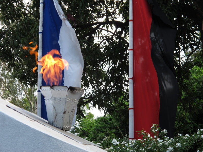 Die Flagge Nicaraguas und der Fsln, der derzeitigen Regierungspartei.