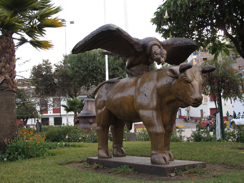 Der angebundene Kondor, der den Bullen zerfleischt - Symbol fuer die Befreiung von den Spaniern.
