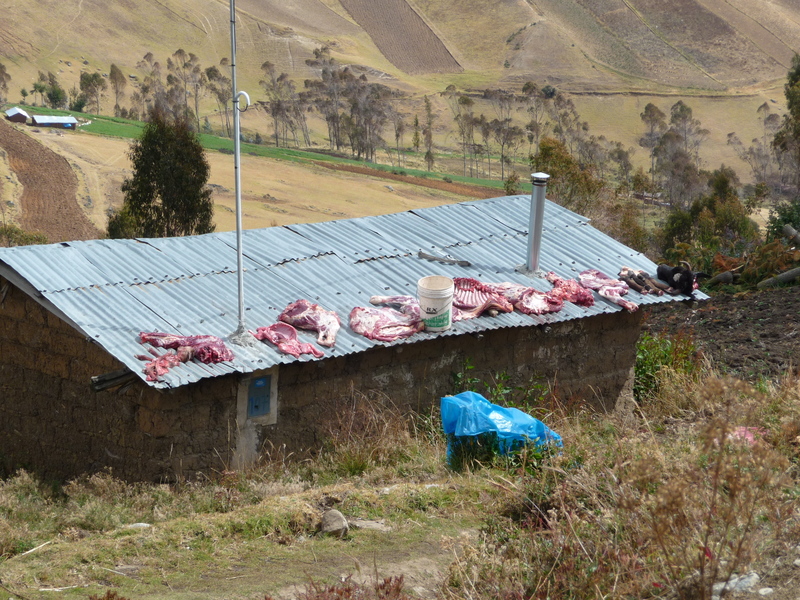 Hier wird eine frisch geschlachtete Kuh getrocknet.