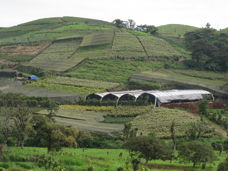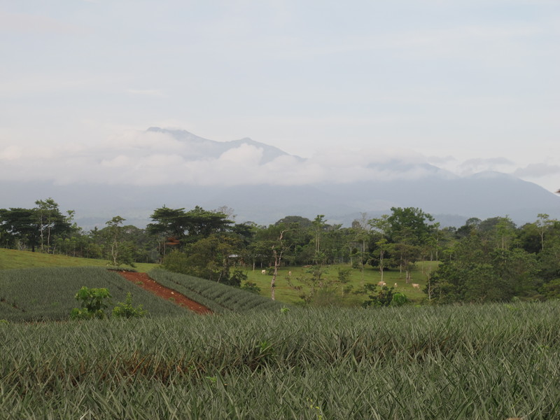 Erste Ausblicke uebers Ananasfeld auf die Cordillera de Guanacaste.