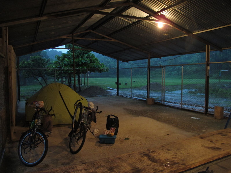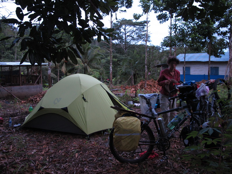 Wir suchen uns gerne ueberdachte Zeltplaetze.