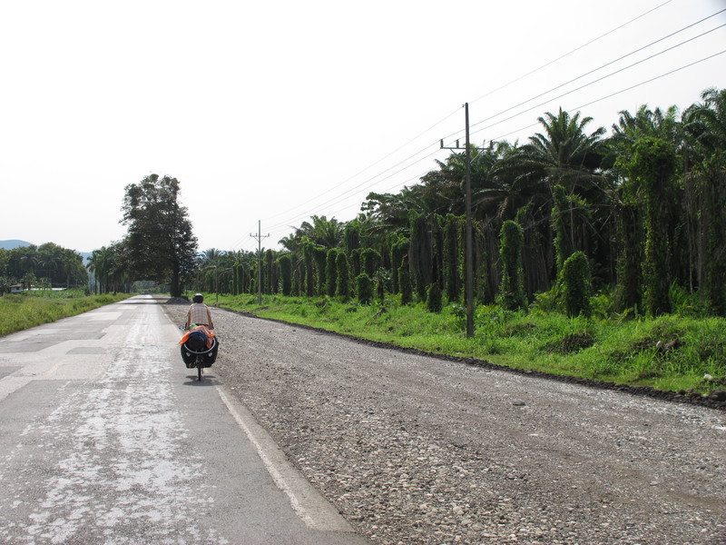 Kurz vor Panama begleiten Palmoelplantagen ueber Kilometer die Strasse.