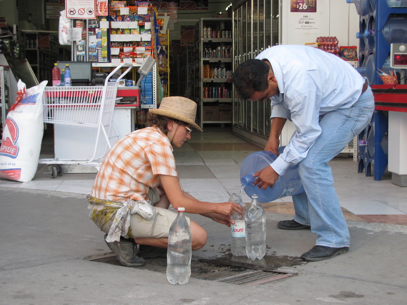 Beim Wasserholen. Diesmal sogar echtes Trinkwasser!