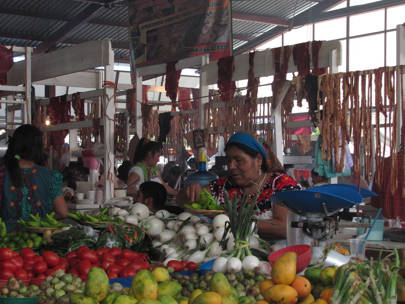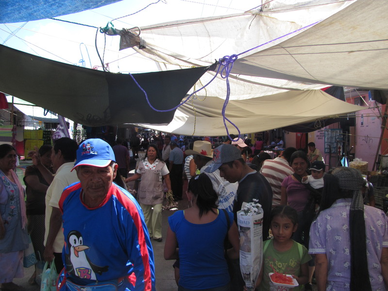 Markt unter Planen. Aufgehangen nicht fuer Mitteleuropaer.