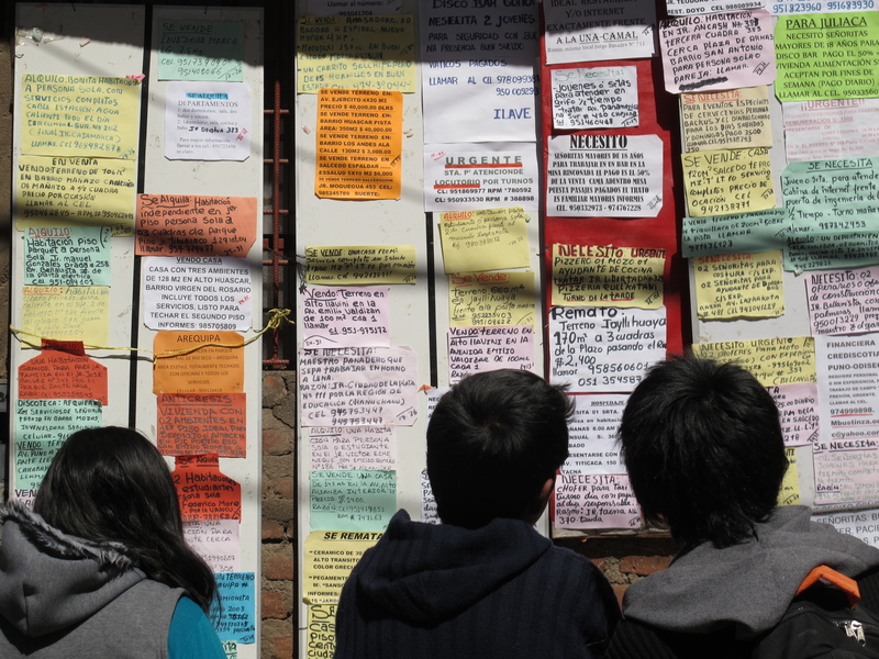 Kleinanzeigenwand in Puno.