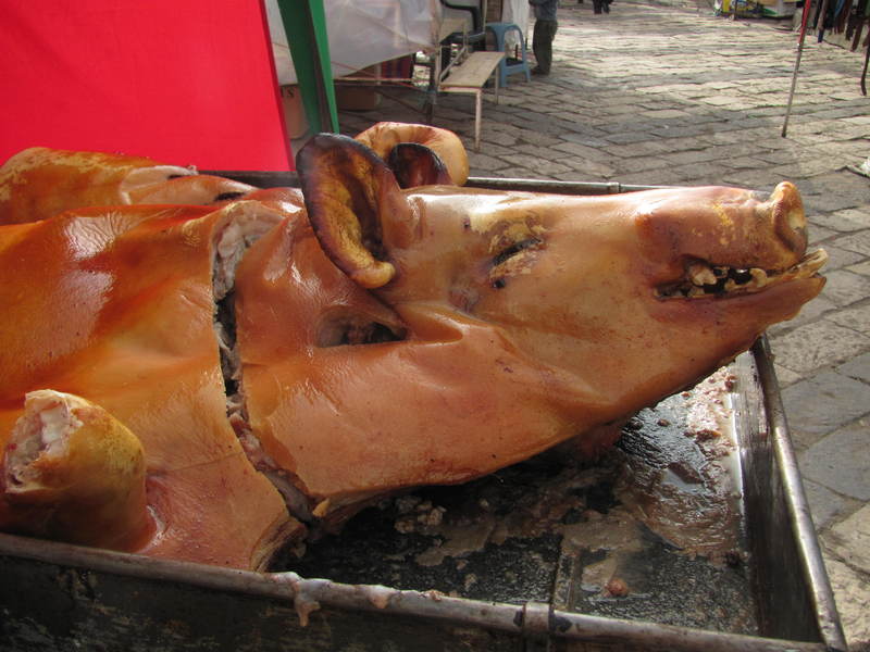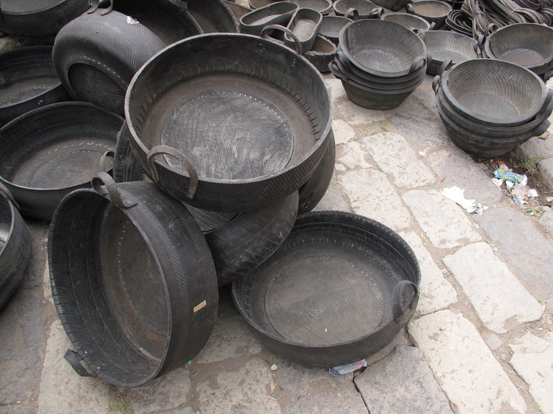 Markt in Guamote, Fressnaepfe aus alten Autoreifen