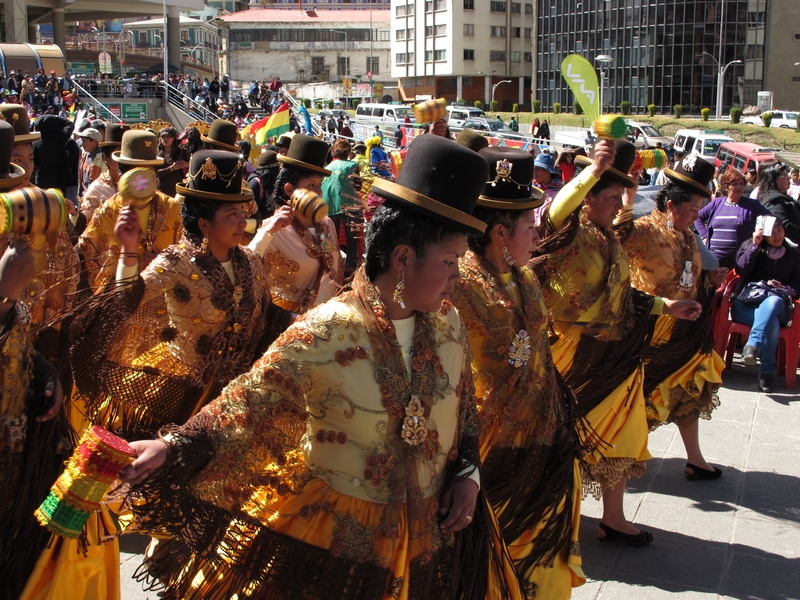 Volle Konzentration! Bunter Umzug am Tag der Unabhaengigkeit in La Paz.