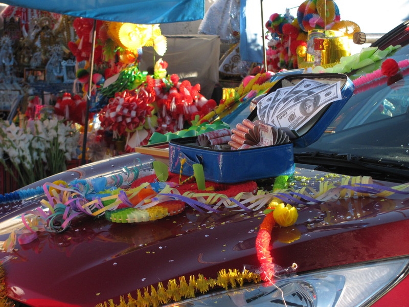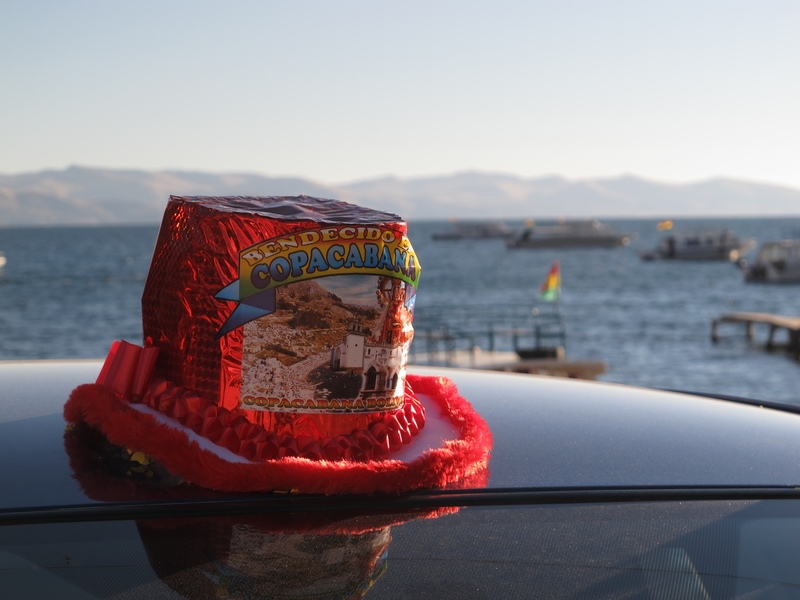 Copacabana: Auch mit Huetchen werden die Fahrzeuge zur Segnung geschmueckt!