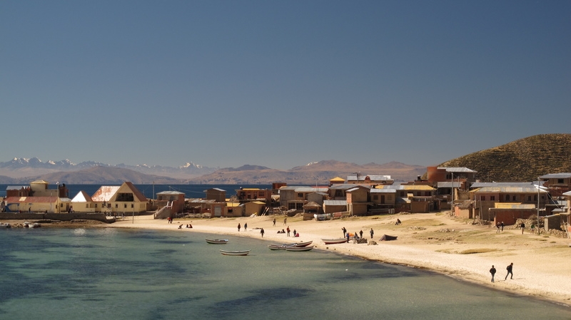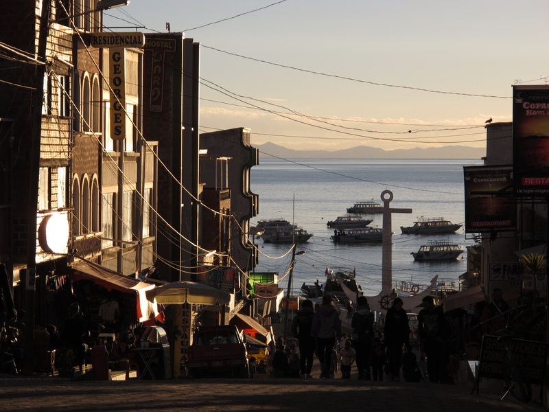 Copacabana: Hotels, Souvenierlaeden und Titicacasee.