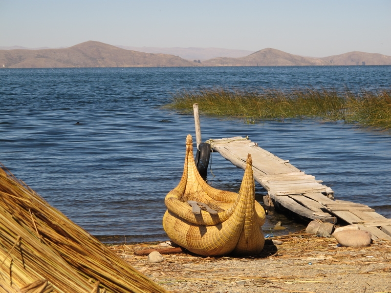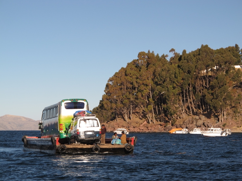 Engstelle des Titicacasees bei Tiquina (800m). Auch Busse werden per schwankender Kaehne transportiert!