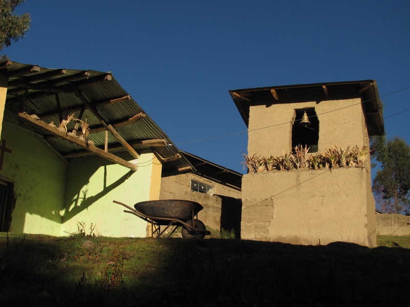 Maca-Ruebe mit Dorfkirche in Huayre.