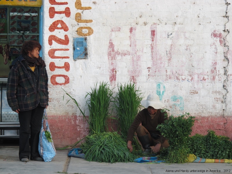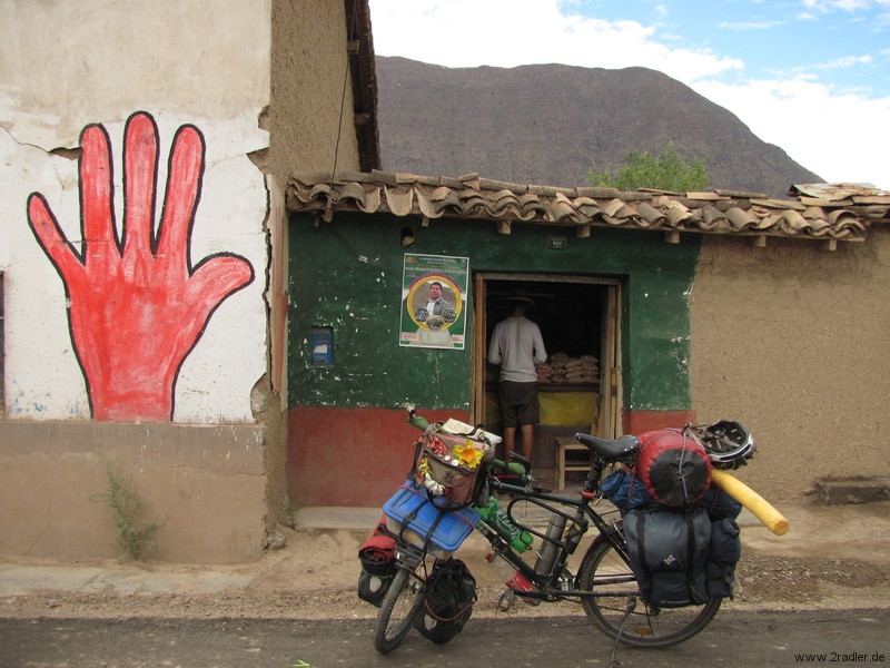 Hardy im Laden in Mayocc, Fahrrad davor.