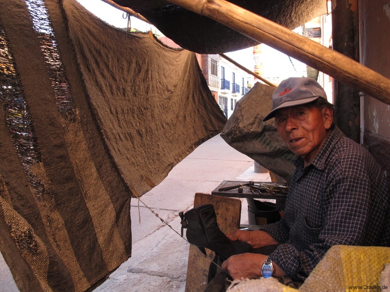Zum Abschluss flickt Ricardo noch Hardys Billig-Schuhe.