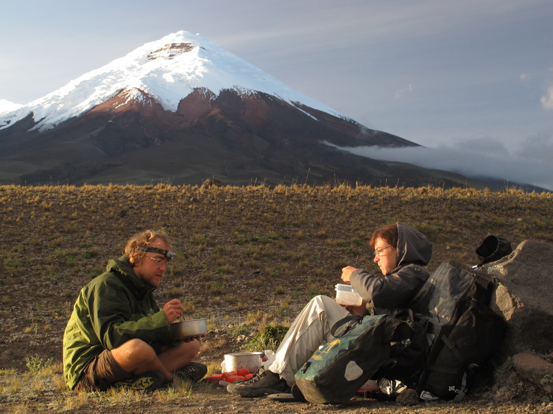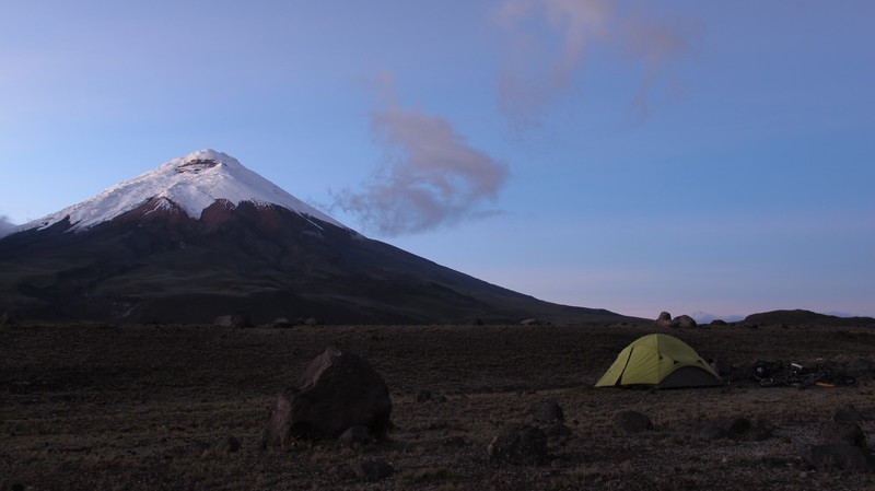 Wir zelten am Fuss des Vulkans Cotopaxis.