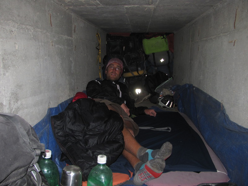 Uebernachtung im Bauwagen der Strassenwartung in Tapi Aike.