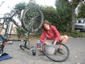 - Km 6995: 5. Platten bei Hardy (Hinterrad, kapputtes Ventil des Schlauches)